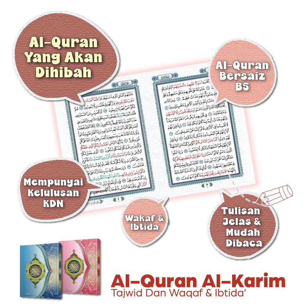 Tiada minimum hibah kerana kami akan mencetak al-quran melalui jumlah hibah yang terkumpul pada akhir tahun.